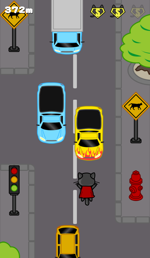 His favorite street is crowded today. There are so many cars and obstacles he never noticed before. But that's not going to stop him from going for his afternoon stroll: the afternoon stroll is sacred! Luckily, he's not an ordinary cat. He has special powers... he can fly!