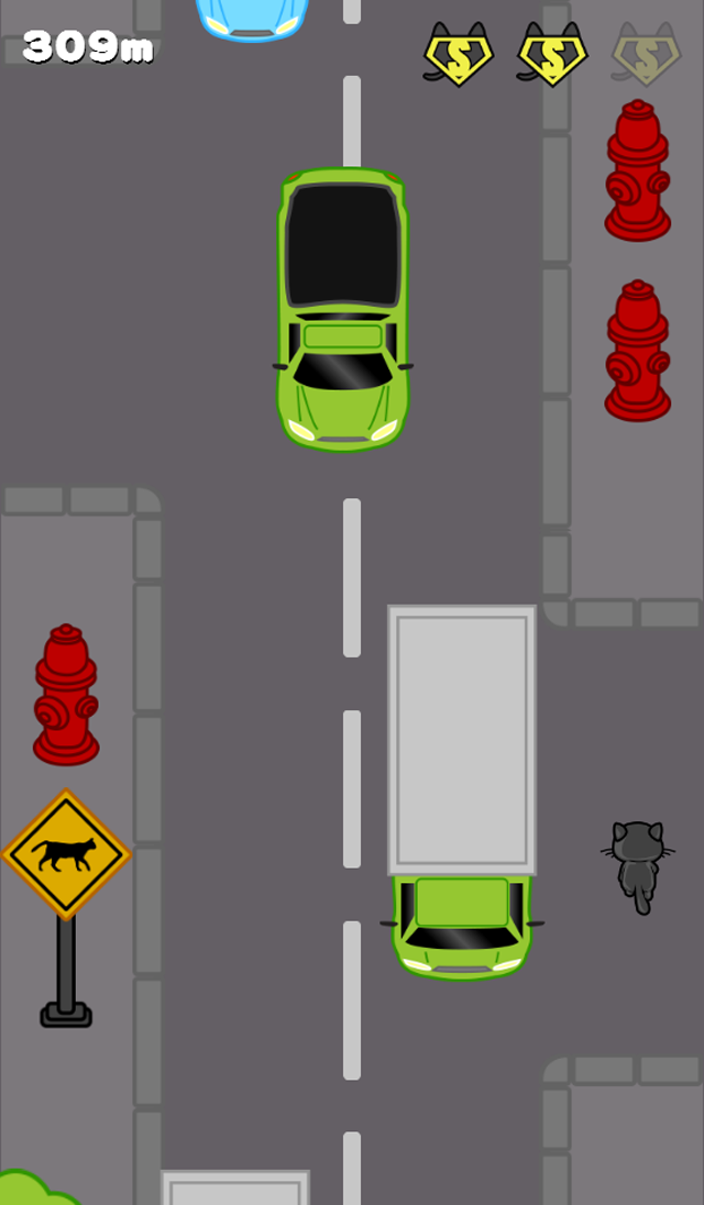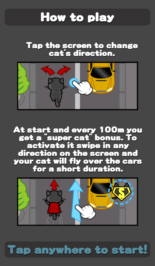 - Le joueur tape sur l'écran pour faire changer le chat de direction ou glisse son doigt sur l'écran pour le faire s'envoler.